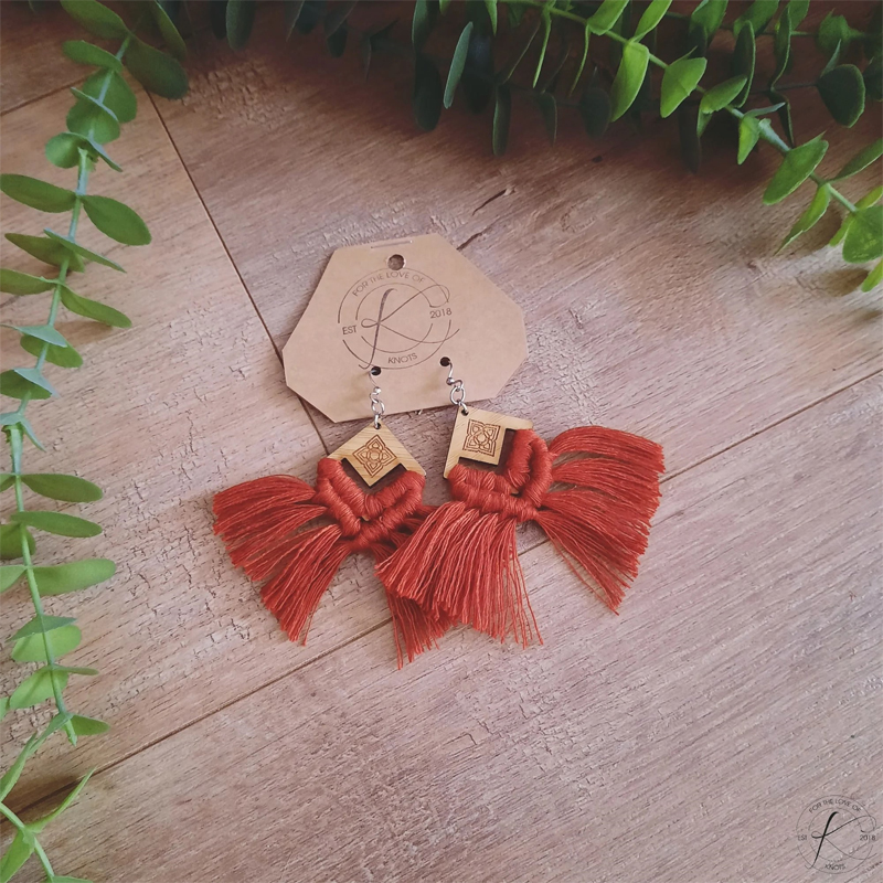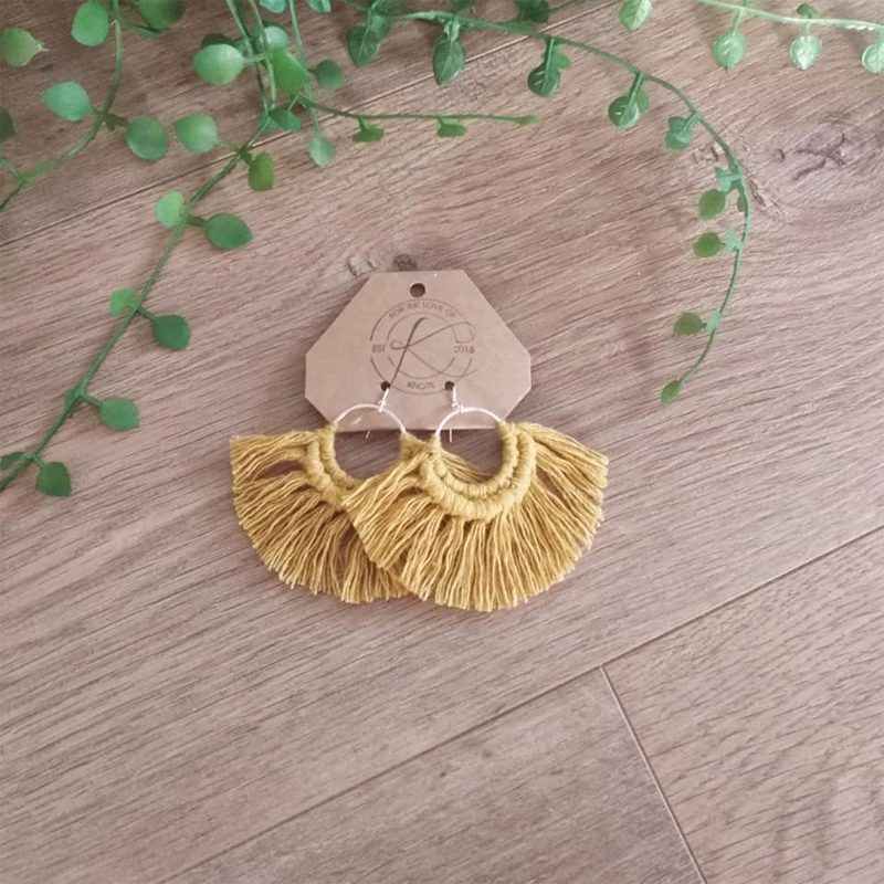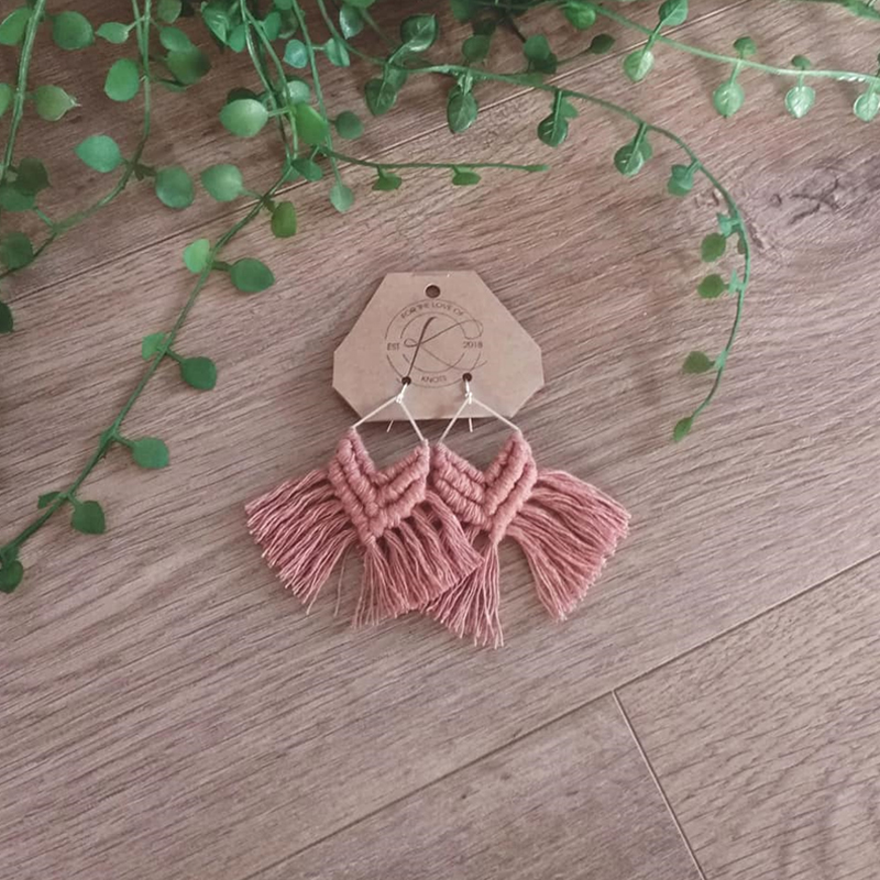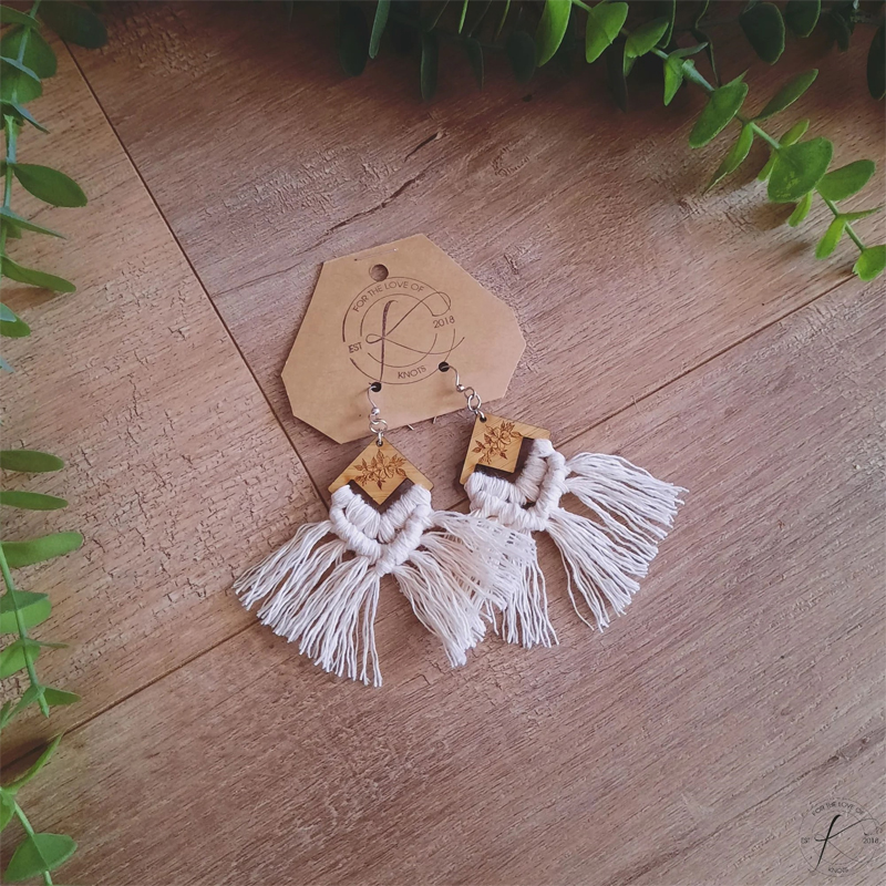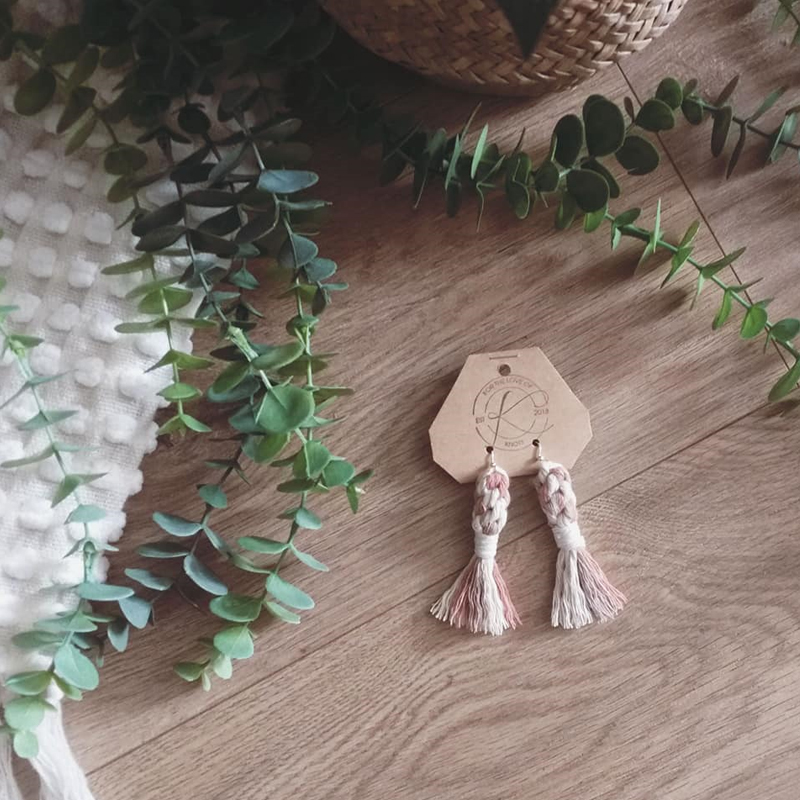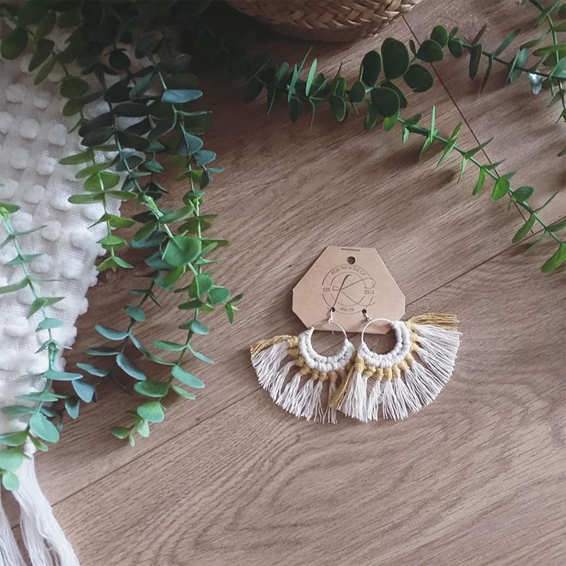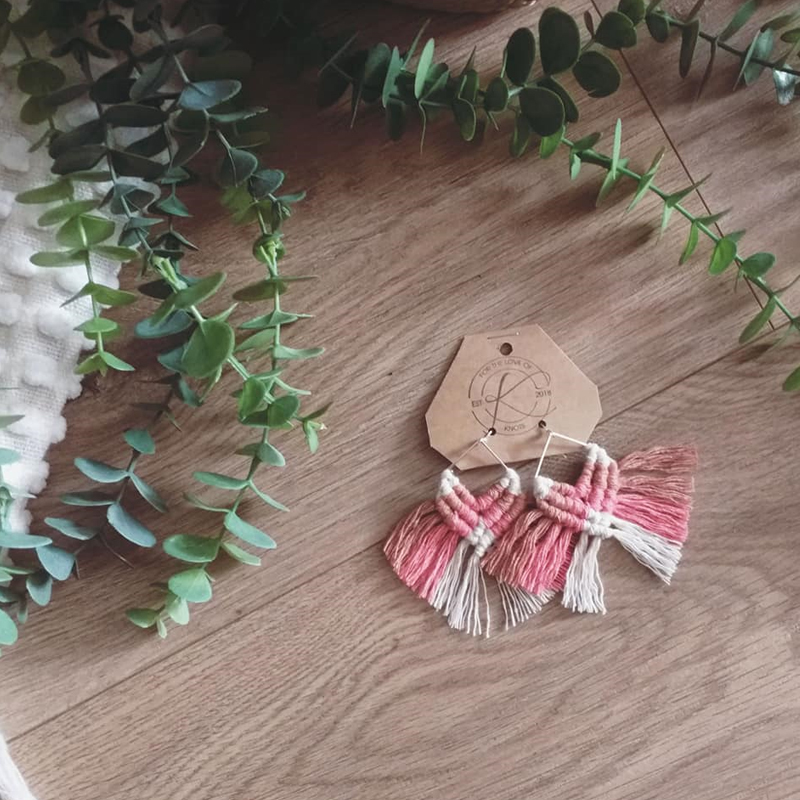 100% recycled cotton, surgical steel + bamboo macrame earrings