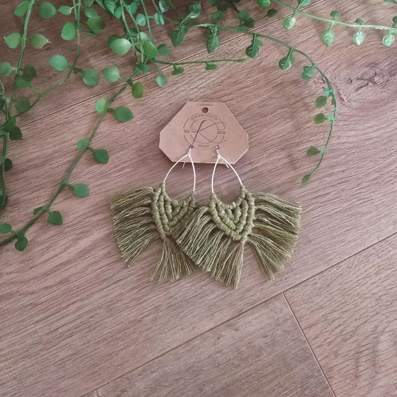 100% recycled cotton, surgical steel + silver plate macrame earrings